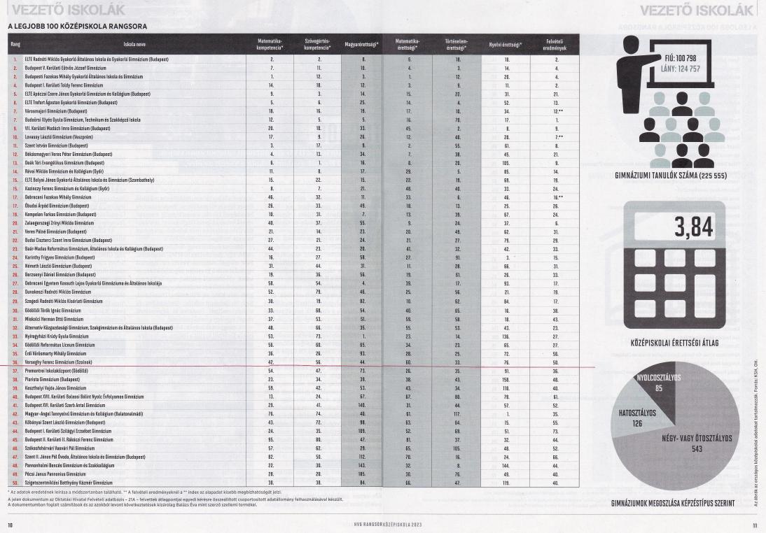A rangsorba bekerült gimnáziumok képzéseiről, tagozatairól és az itt folyó oktató munkáról is részletes beszámolót közöl a lap.